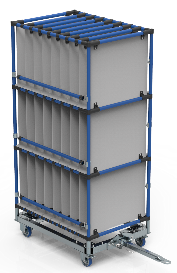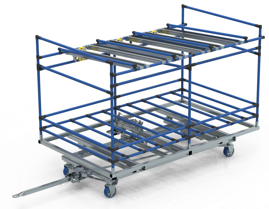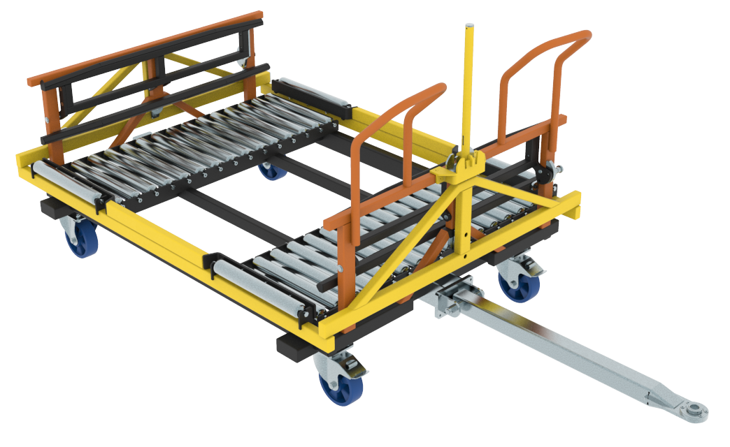 Systèmes intralogistiques complets — des trains logistiques « mère‑fille » (cadres E, T, C et H) jusqu’aux plateformes de postes de travail et aux chariots à rouleaux. Nos solutions assurent un transport intralogistique souple, sûr et efficace des matières premières comme des produits finis.